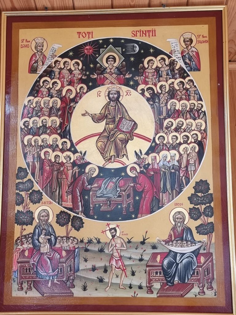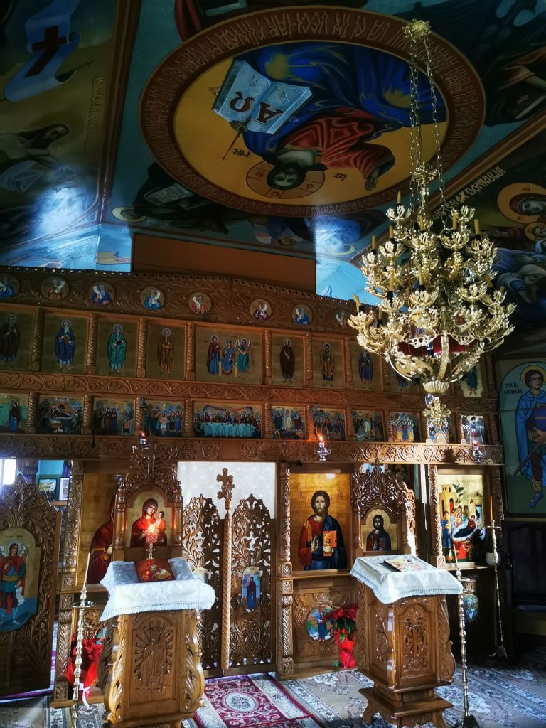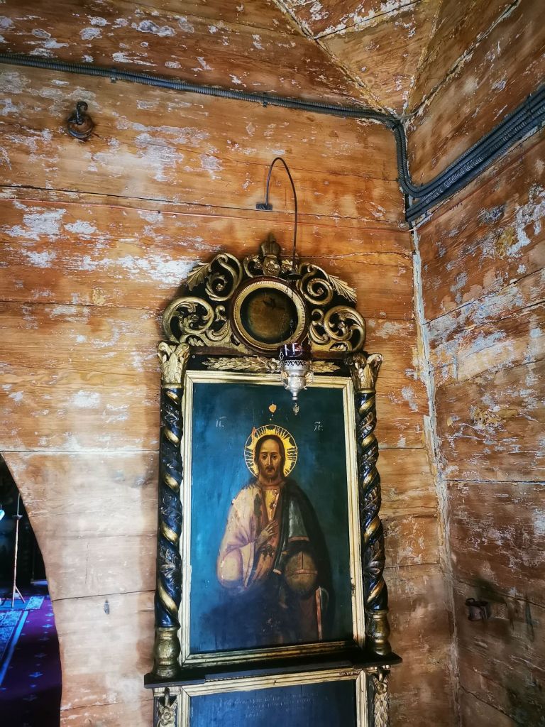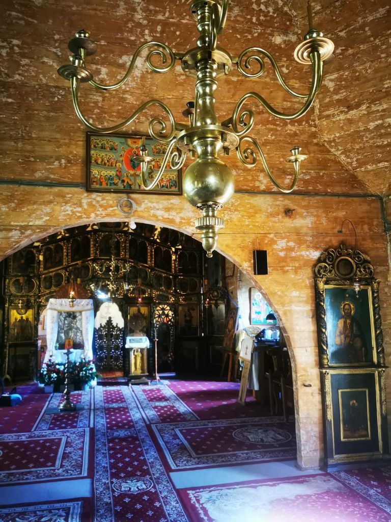 În biserică am fost impresionați de icoanele așezate pe pereții din lemn. O îmbinare de culori care te cufundă în altă vreme. Nu le mai văzusem în alte mănăstiri, pesemne că or fi destul de rare. Dar ceea ce se transmite prin acestea, aș putea zice, că înlocuiește aproape suficient pictura lăcășului.