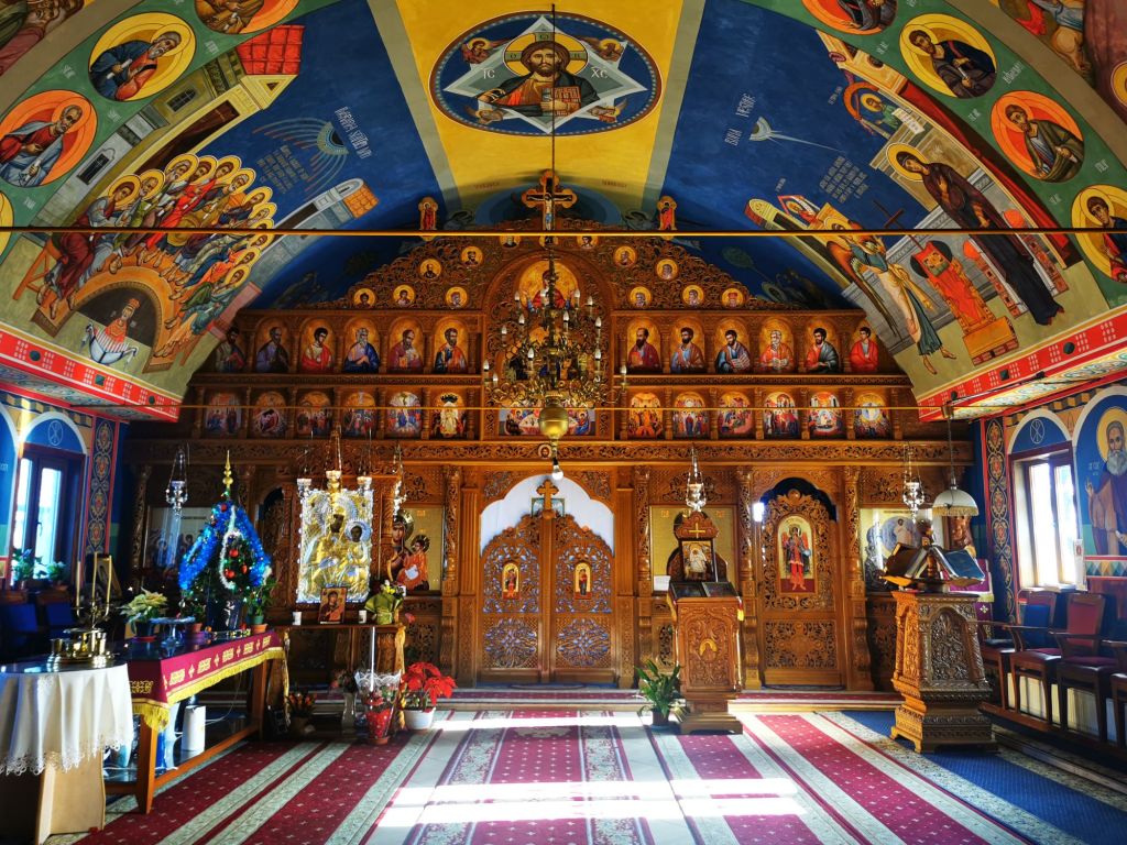 Culori vibrante, frumos pictate, o masă pe care zac hârtii prăfuite și câteva lumânări, în așteptarea numelor de pomenit la rugăciune.