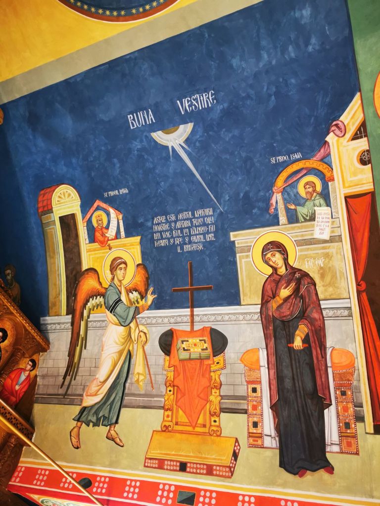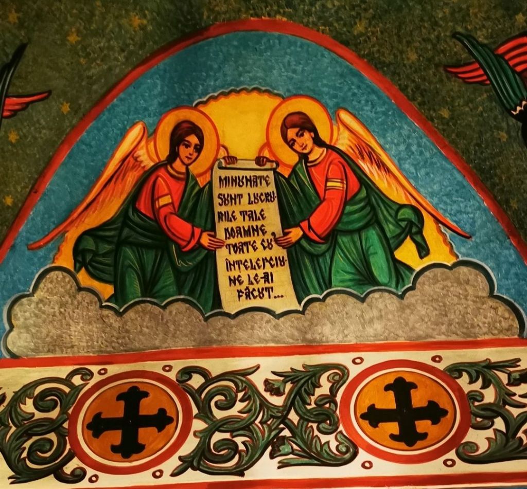 Tot aici, doi îngeri transmit următorul mesaj: “Minunate sunt lucrurile Tale Doamne, toate cu înțelepciune le-ai făcut…”.